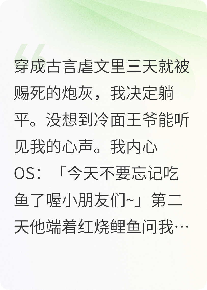 芊月岁岁-著 查看被读心后,冷面王爷天天喊我吃鱼